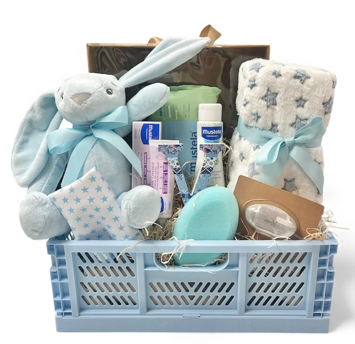 Canastilla regalo nacimiento mi letra azul