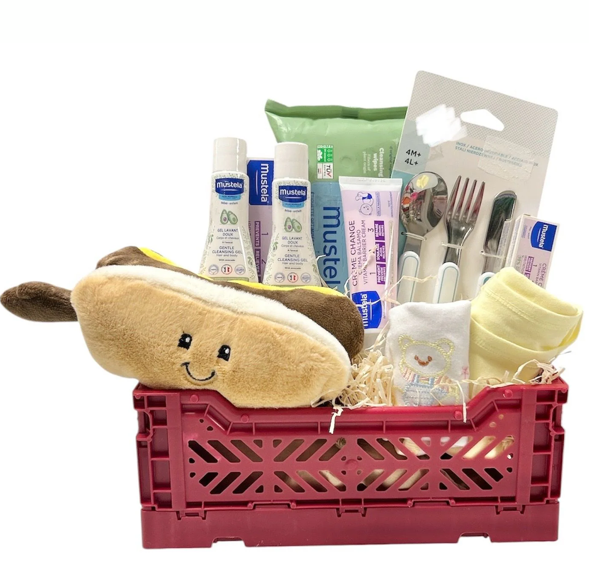 Canastilla regalo nacimiento Ñam Ñam perrito caliente