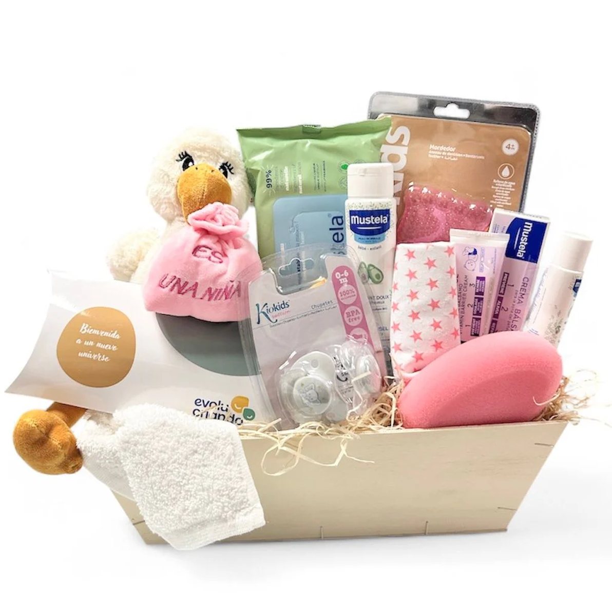 Cesta Evolucriando baby cigüeña rosa