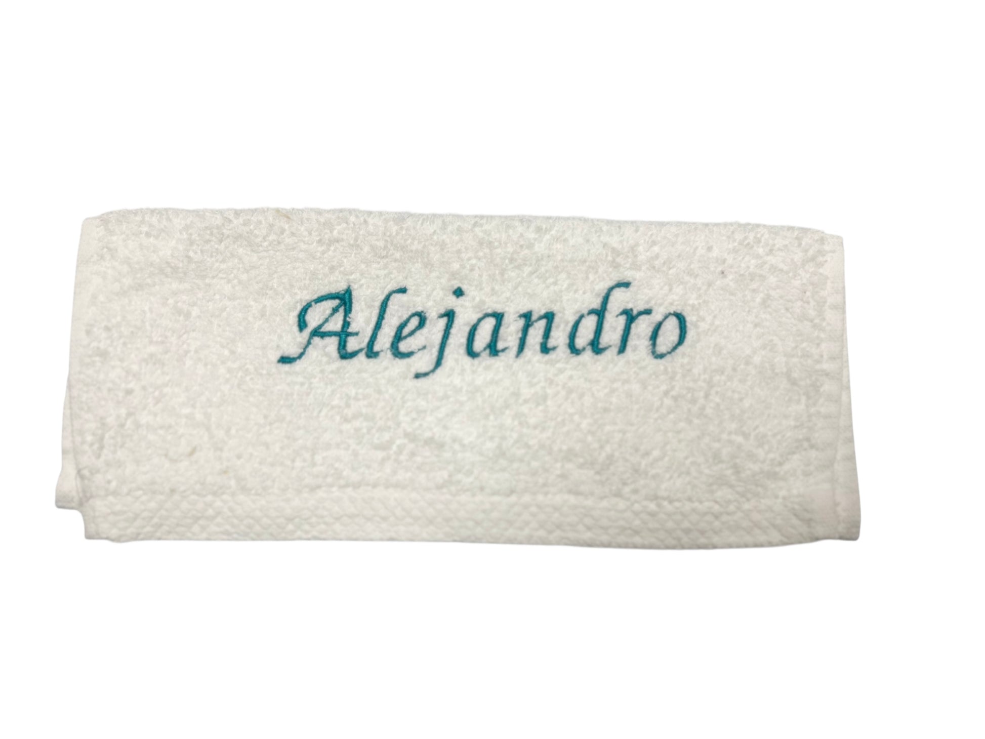 Esta toalla suave y absorbente viene personalizada con el nombre ALEJANDRO bordado con la máxima calidad.